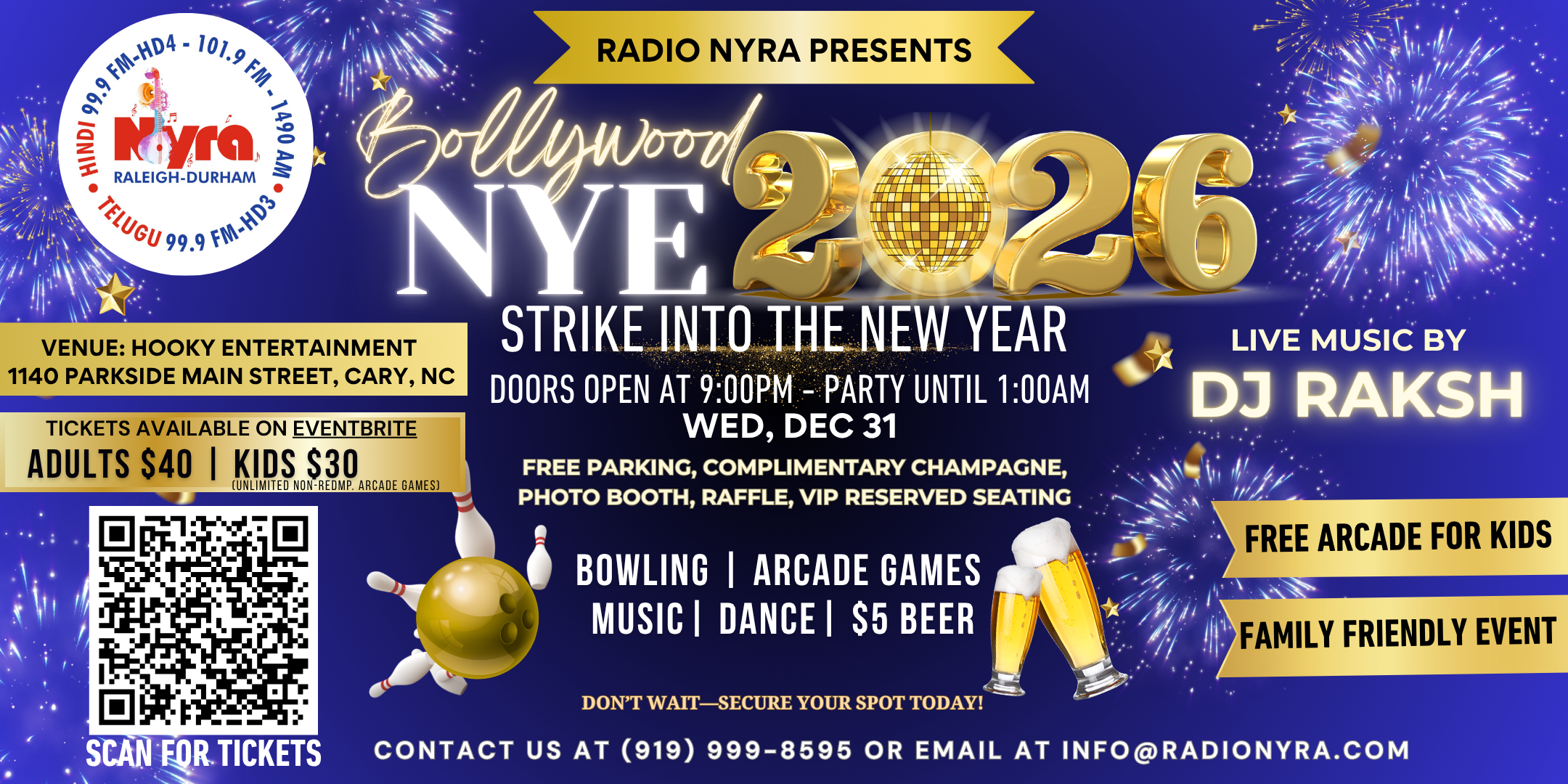 Pioneering since 2014, Radio Nyra has been the premier gateway for the Indian Subcontinent communities in Raleigh-Durham, serving 100,000+ listeners every week with 24/7/365 Bollywood & Tollywood news, talk, and music.