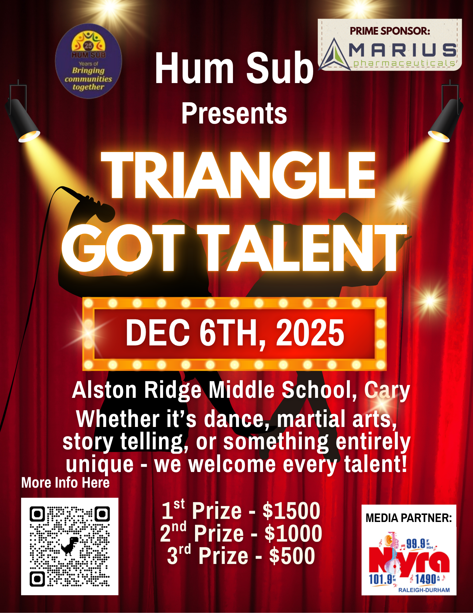 HumSub’s Triangle Got Talent (TGT) is a premier talent showcase celebrating the vibrant and diverse talents of the Triangle community. As part of HumSub’s 25th Anniversary Celebrations, TGT offers a platform for performers of all ages and backgrounds to display their skills, whether in music, dance, comedy, or other performing arts.